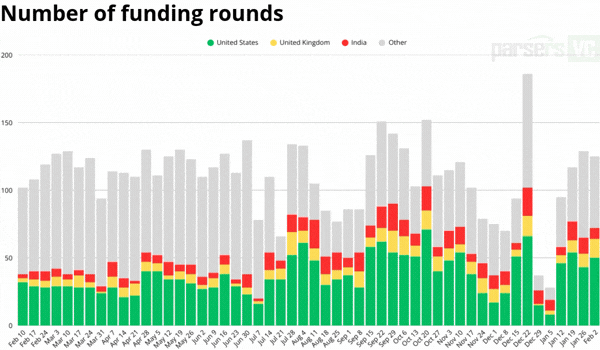 Number of funding rounds - February 2, 2026 by Parsers VC