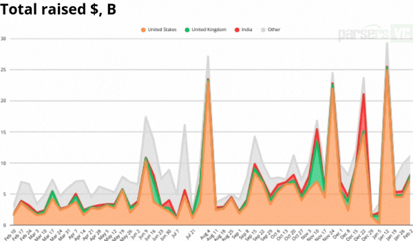 Total raised $, bln - February 2, 2026 by Parsers VC